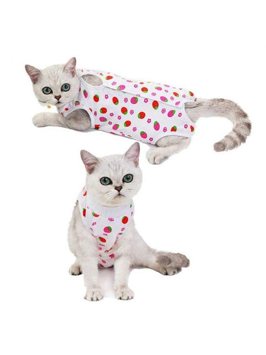 BODY POST OPERATORIO PARA GATO TALLA L CON DISEÑO DE FRUTILLAS Y FLORES, adorable body con un original diseño que se adapta perfectamente a la anatomía de tu gato con una correcta selección de la talla, es de una tela cómoda, suave al tacto y transpirable. Es una excelente solución post operatorias en gatos, reemplaza al collar isabelino y es perfecto para prevenir infecciones o heridas causadas por tu gato al lamerse, por lo que contribuye a la adecuada cicatrización.
