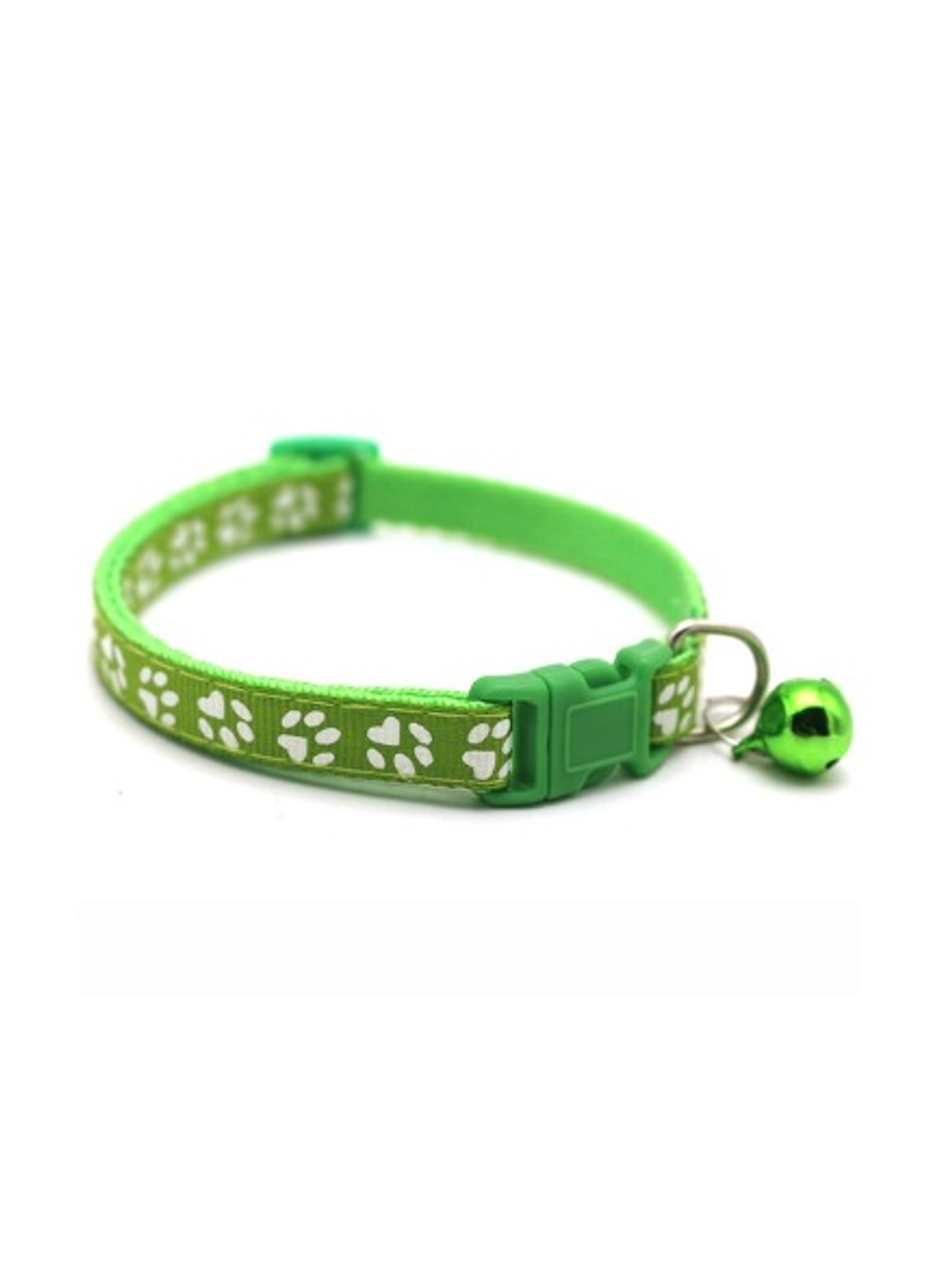 COLLAR PATITAS VERDE CON CASCABEL que combina un buen diseño con comodidad y seguridad para tu gato.