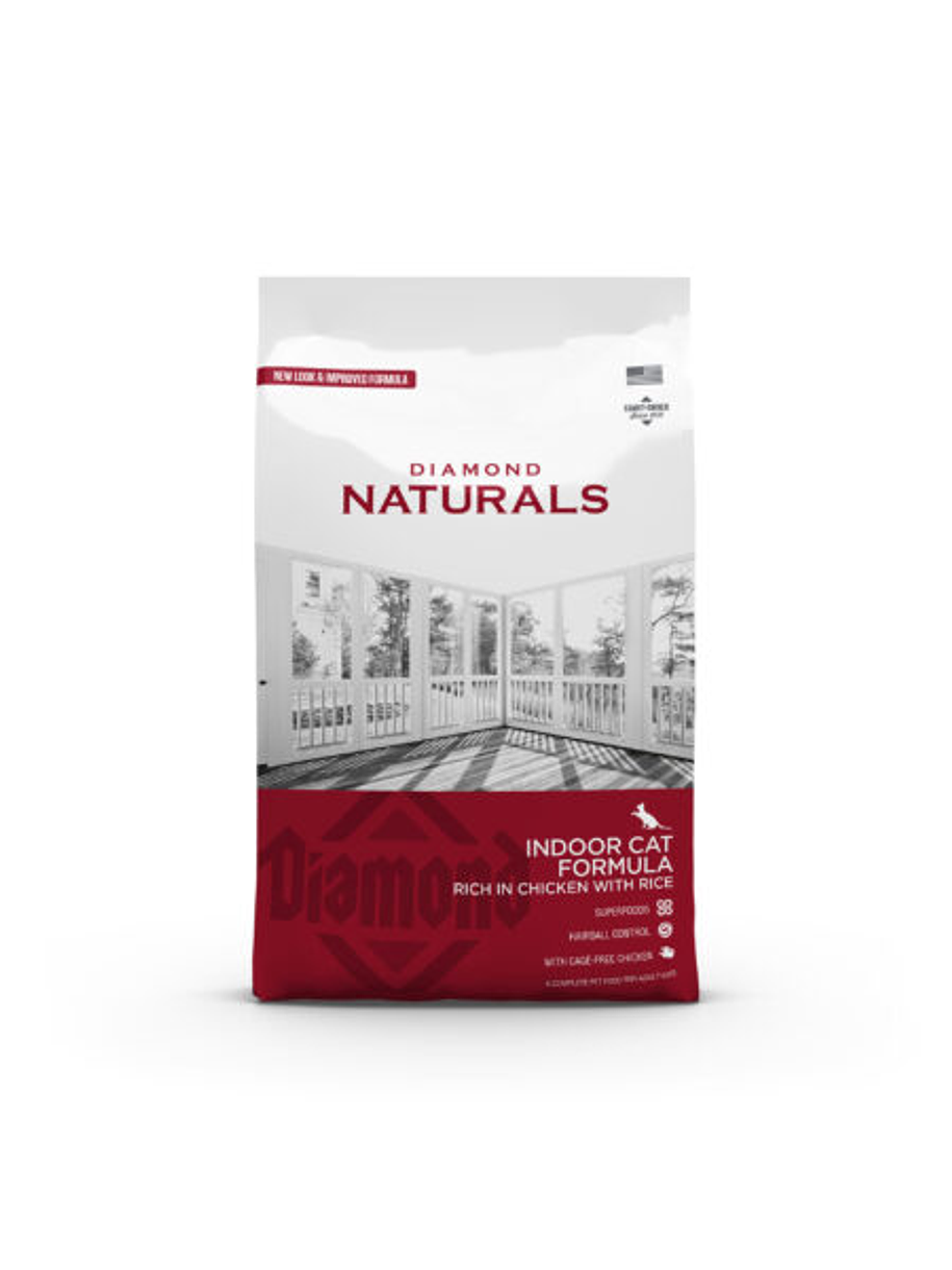 Diamond Naturals Indoor Cat Chicken & Rice Formula está formulado para cumplir con los niveles nutricionales establecidos por los perfiles de nutrientes de la AAFCO para el mantenimiento de gatos adultos.