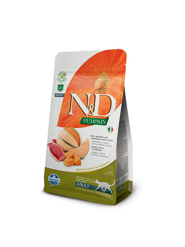 N&D PUMPKIN para gatos adultos, con pato, melón y calabaza, 1,5kg, alimento completo para gatos adultos.