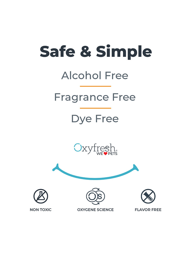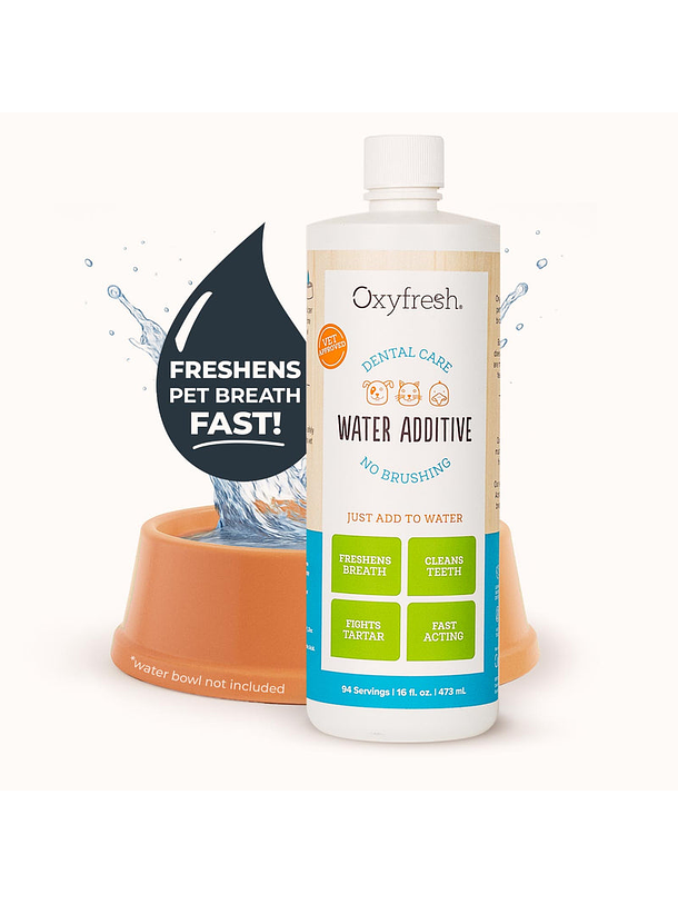 La forma más fácil, rápida y efectiva de cuidar la salud bucal de tu michi (¡y también de tu perrito!). Oxyfresh es un aditivo para el agua potable de tu mascota que elimina el mal aliento, combate la placa y el sarro, y promueve encías sanas, sin necesidad de cepillado. ¡Ni lo notarán!