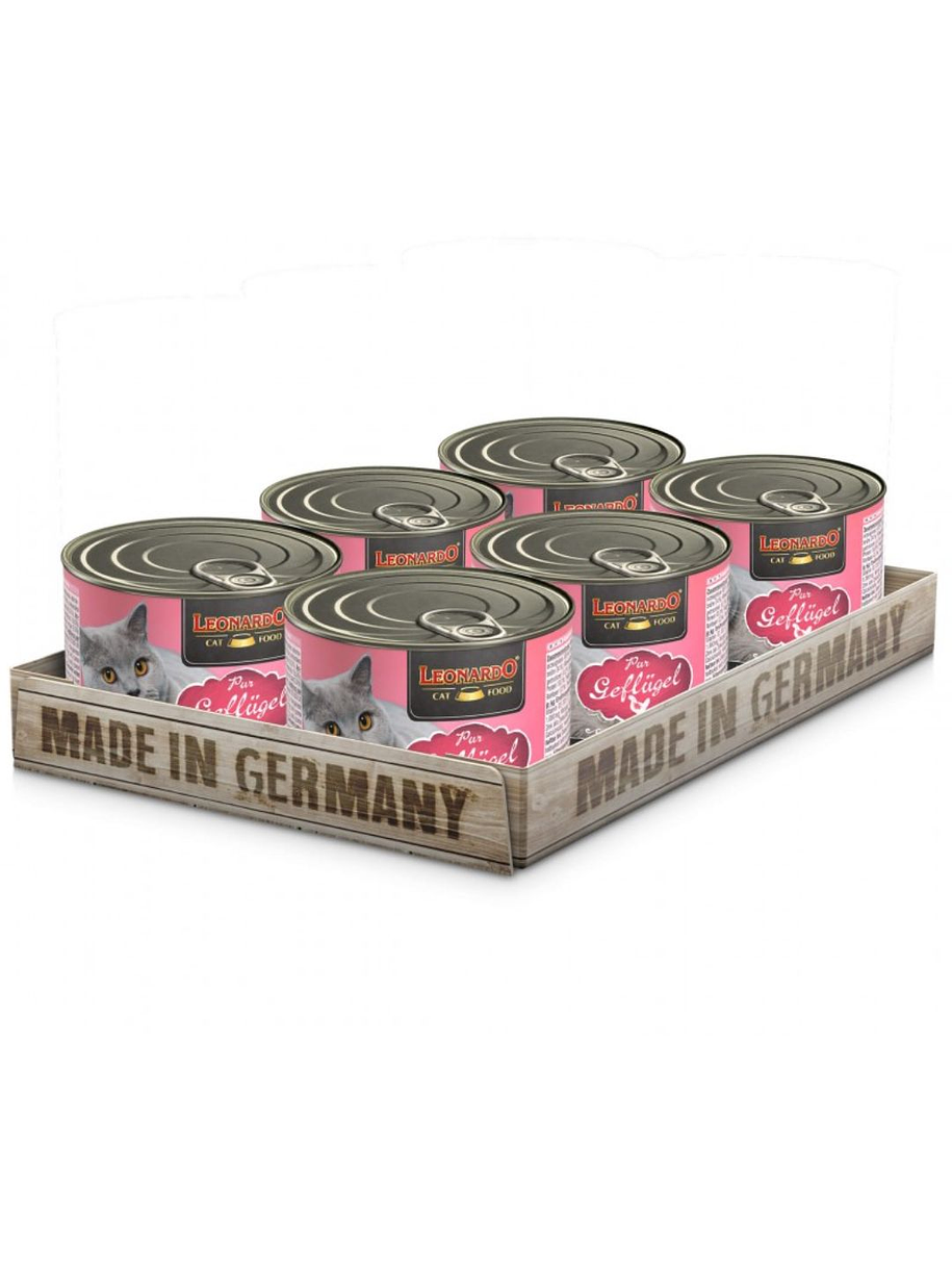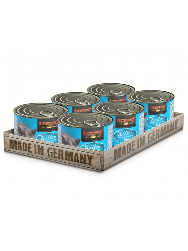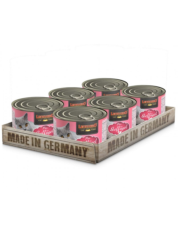LEONARDO® Quality Selection es un alimento húmedo indicado para gatos adultos con alto contenido de proteínas. En su fórmula solamente se utilizan productos cárnicos frescos. Gracias a la alta disponibilidad biológica y a la alta calidad de estos productos, tu gato necesita una cantidad relativamente pequeña para satisfacer sus necesidades nutricionales diarias.