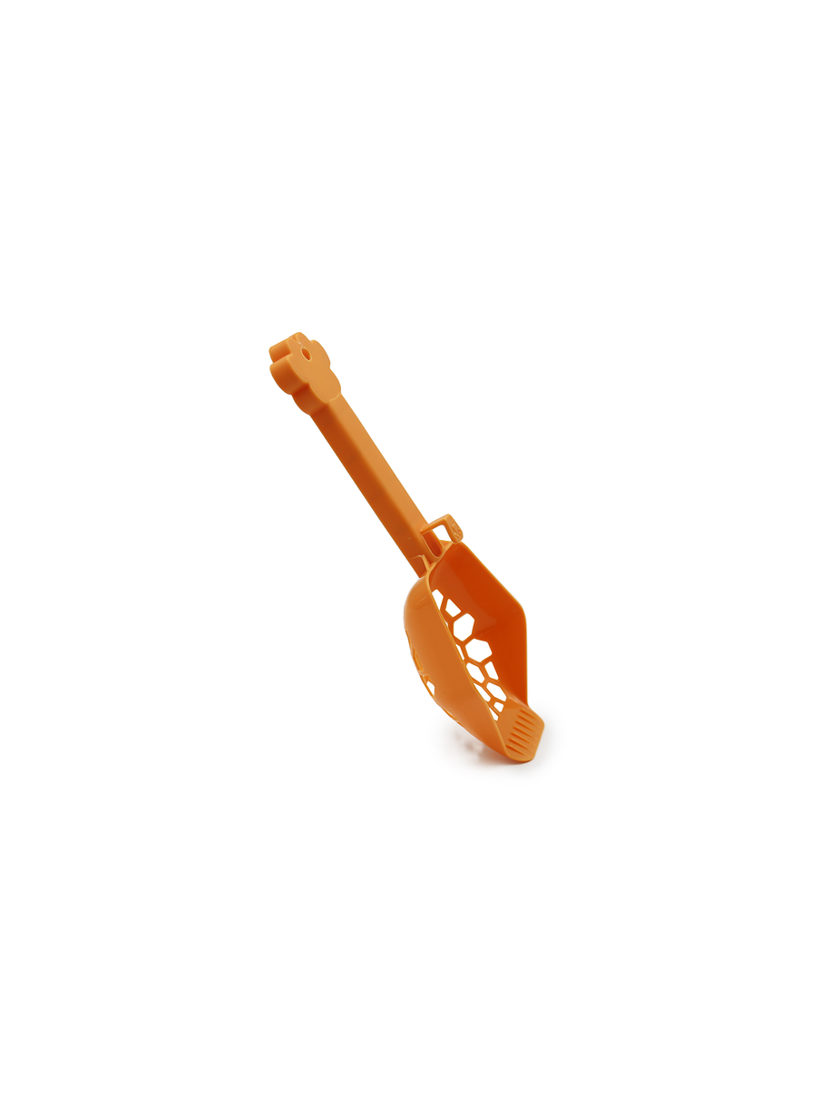 PALA SANITARIA HEY! Diseñada con plástico de alto impacto para una mayor durabilidad, fácil de limpiar y de cómoda manipulación, gracias a la geometría de la pala y el mango. Además, permite ser colgada o enganchada en el arenero dependiendo del diseño de este.