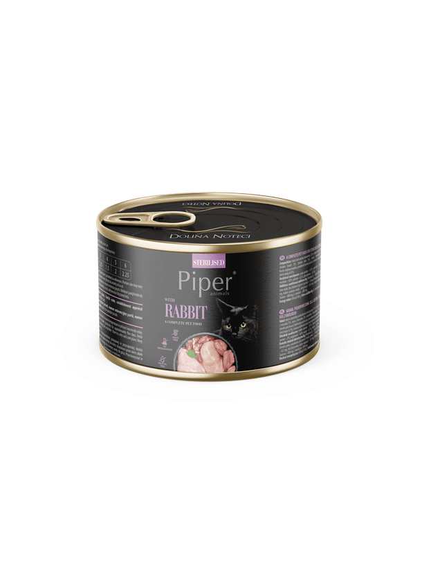 Piper Cat Sterilized Lata Conejo 185g: Alimentación Completa para Gatos Esterilizados