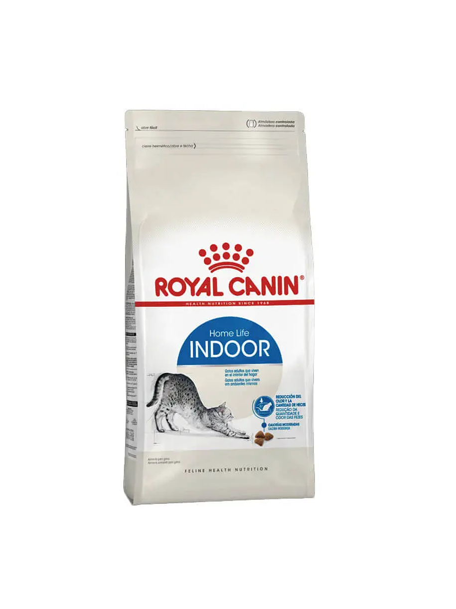 ROYAL CANIN INDOOR ADULT 7,5 KG, alimento para gatos adultos que viven en el interior del hogar, a partir del año de edad. Contiene proteínas de alta digestibilidad (L.I.P) que ayudan a reducir la mala calidad de las heces y el olor fecal, producto de un tránsito intestinal más lento. Está formulado con calorías moderadas para ayudar a mantener un peso saludable adaptado a las necesidades de los gatos con bajos niveles de actividad física que viven en el interior del hogar. Además, contribuye a la reducción de bolas de pelo, ya que ayuda a estimular el tránsito intestinal y a eliminar los pelos ingeridos, gracias a las fibras específicas que contiene.