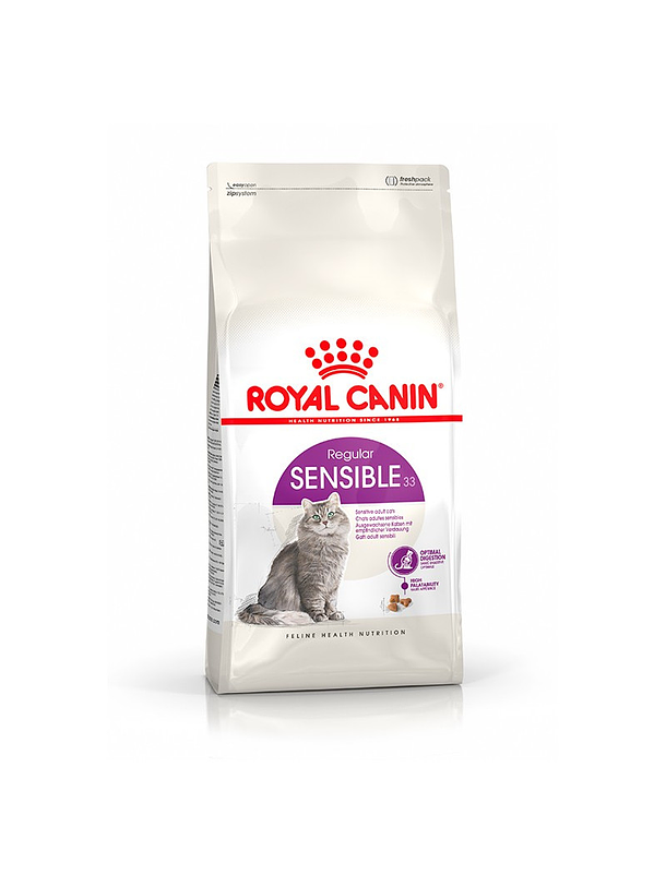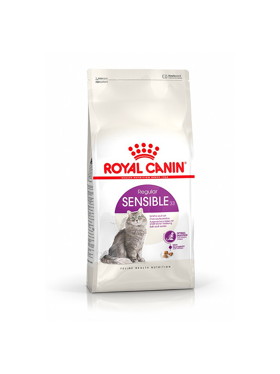 ROYAL CANIN GATOS ADULTOS, SENSIBLE, 1,5 KG, es un alimento equilibrado y completo para gatos adultos de más de 1 año de edad. Está formulado con proteínas altamente digestibles, para gatos con sensibilidad digestiva, ya que el uso de estas proteínas ayuda a disminuir el nivel de proteínas indigestibles en la dieta, limitando la fermentación colónica excesiva y favoreciendo una digestión óptima. Contiene fibras seleccionadas y FOS que promueven el balance de la flora intestinal y, además, ayuda a mantener la salud del tracto urinario de tu gato.