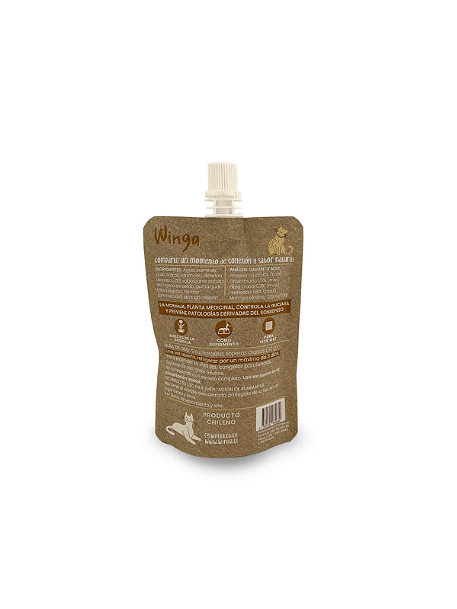 Snack untable que combina pollo de alta calidad con vegetales y Moringa oleifera para ayudar a mantener un peso saludable y proteger la salud cardíaca de tu gato. Su fórmula 100% natural y libre de cereales lo convierte en una opción ideal para aquellos felinos que requieren una alimentación cuidadosa y nutritiva. 😻✨